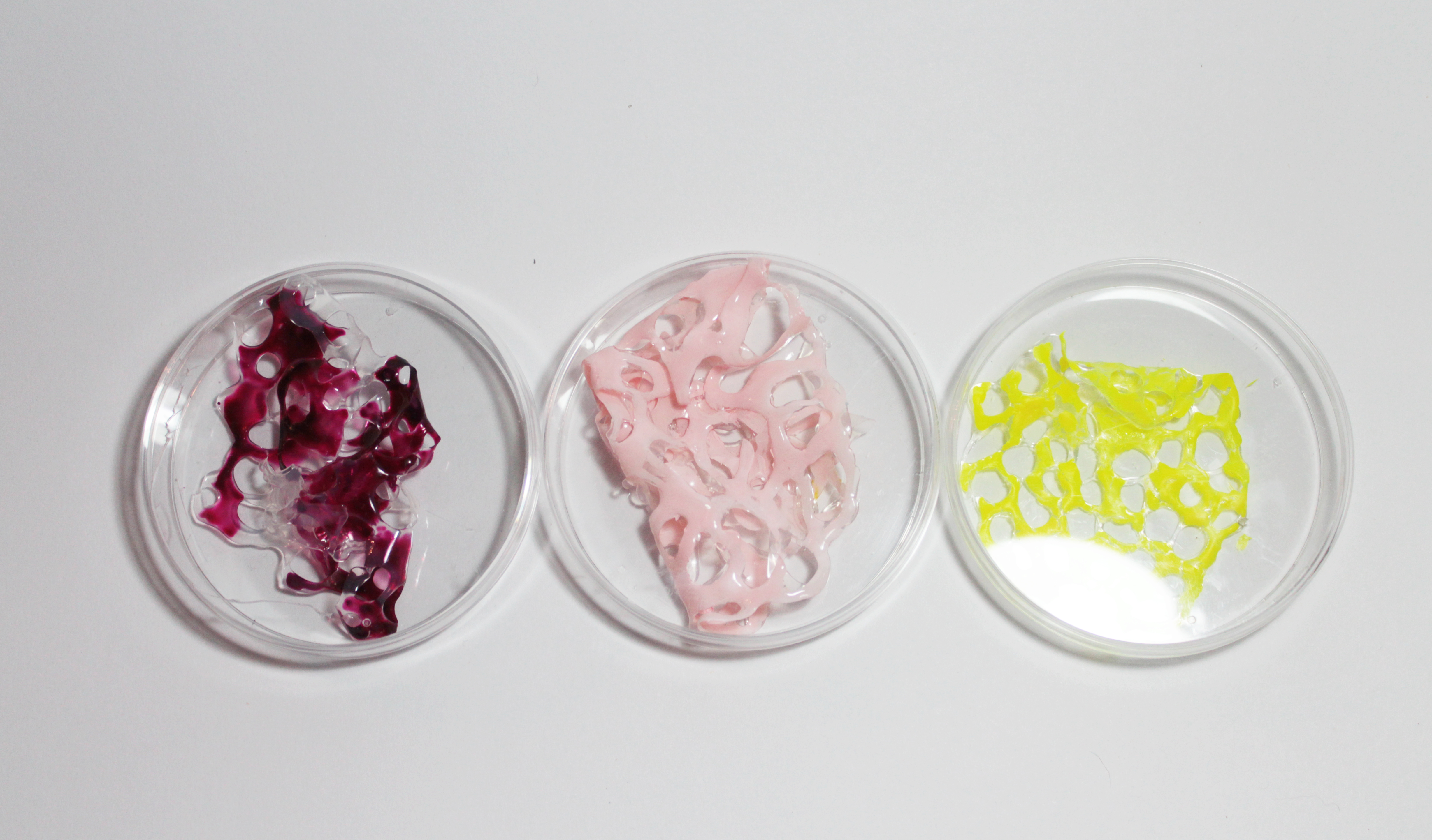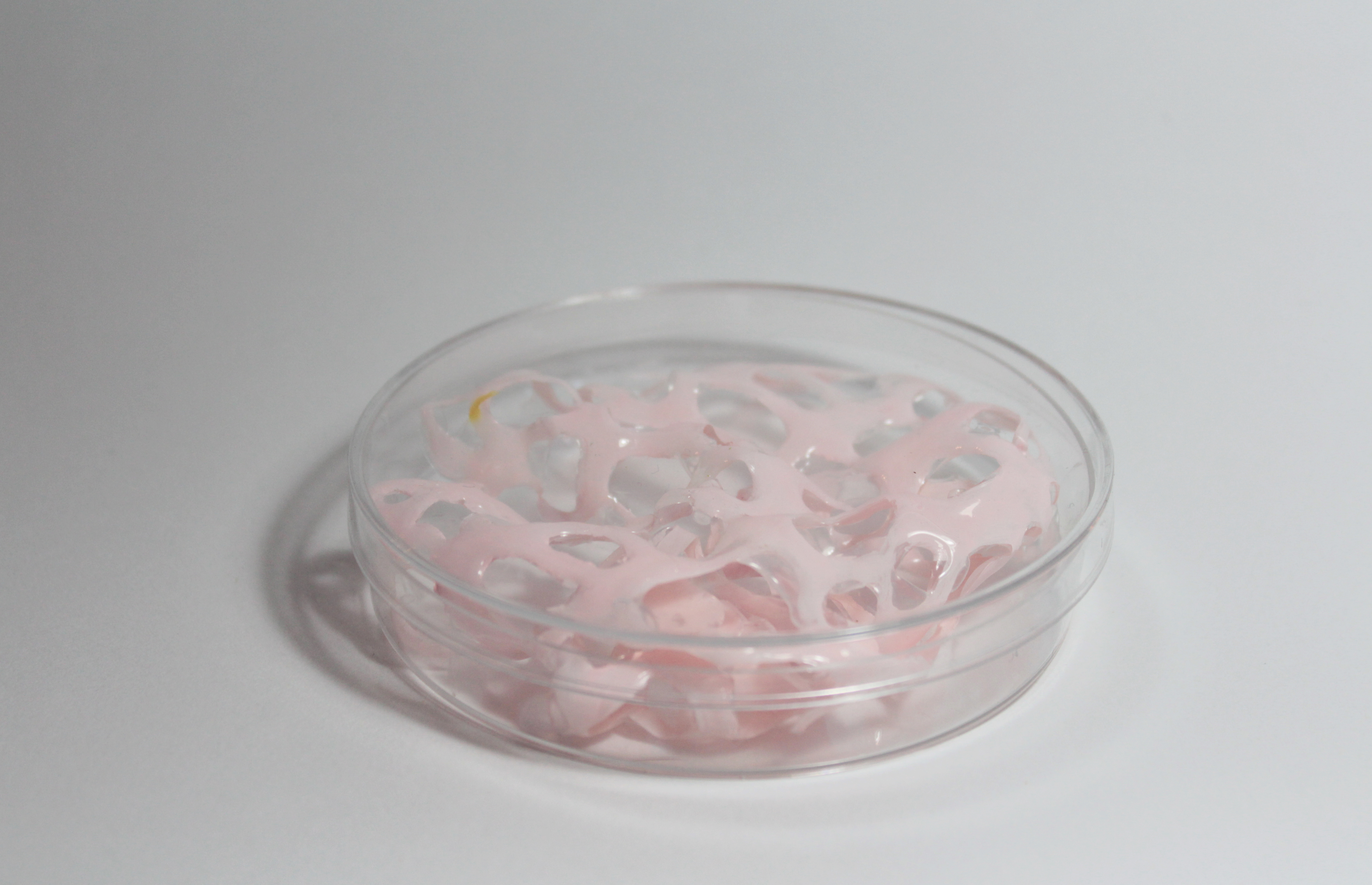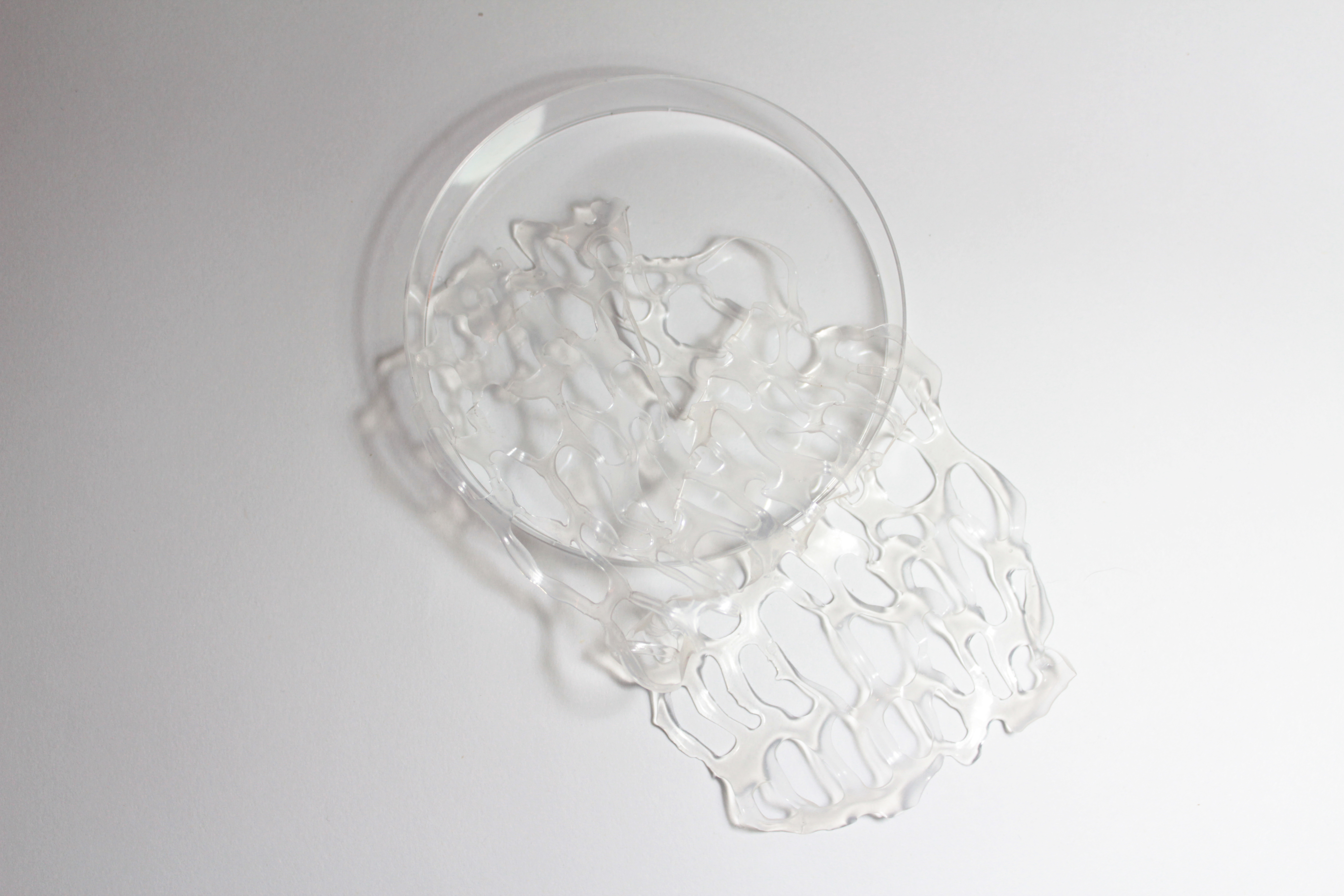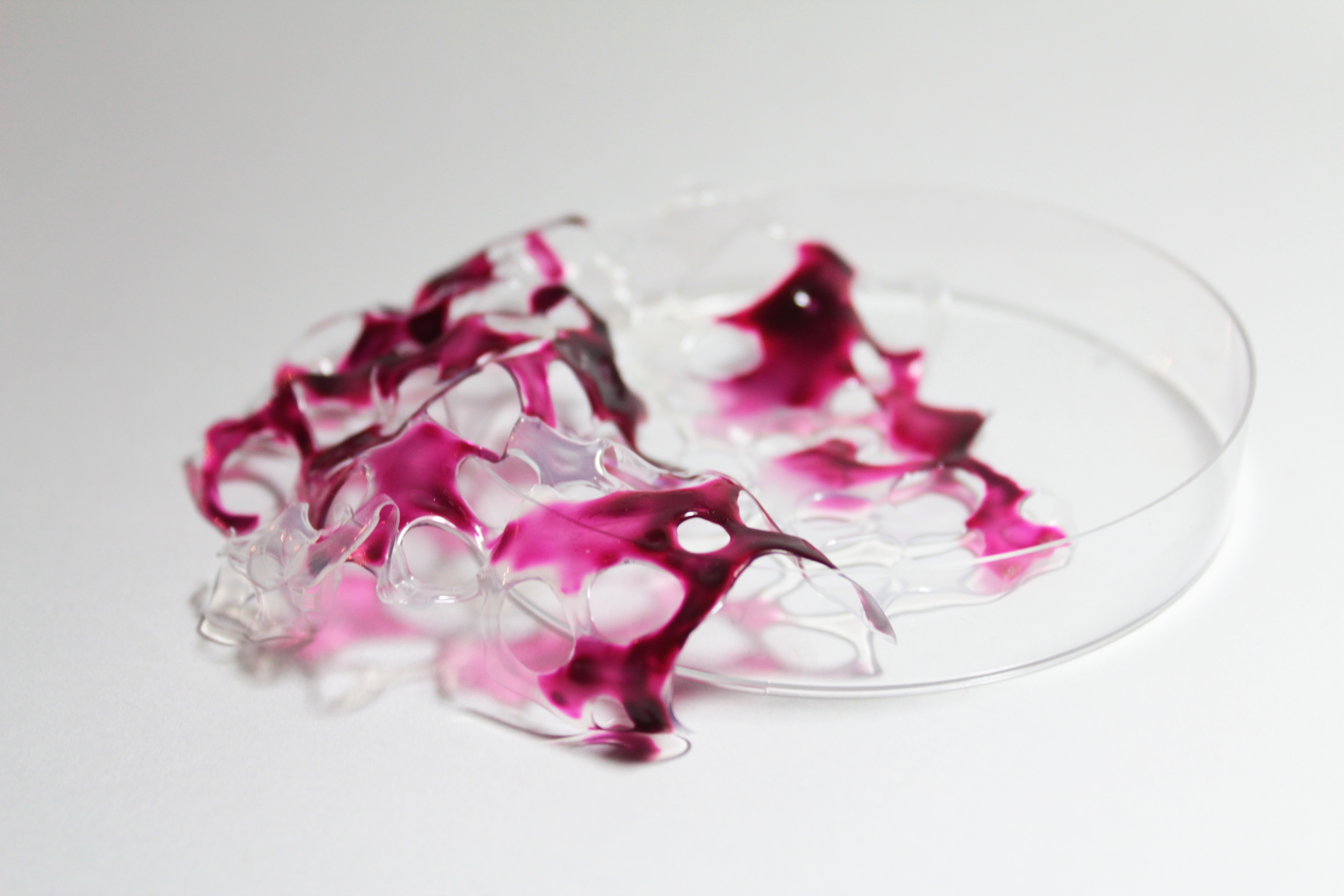 Plastidermic is a project of material exploration inspired by microbiology. This work is based on the relationship established with the structure of textiles, researched in previous works. The process involved an exploration of traditional textile techniques such as crochet and dyeing, merging with materials that resemble cellular structures and patterns of cellular reproduction.