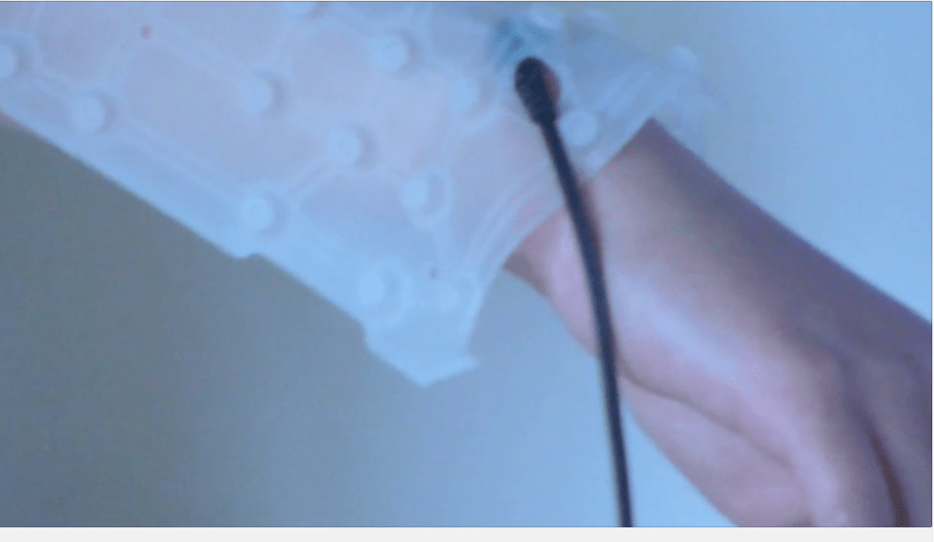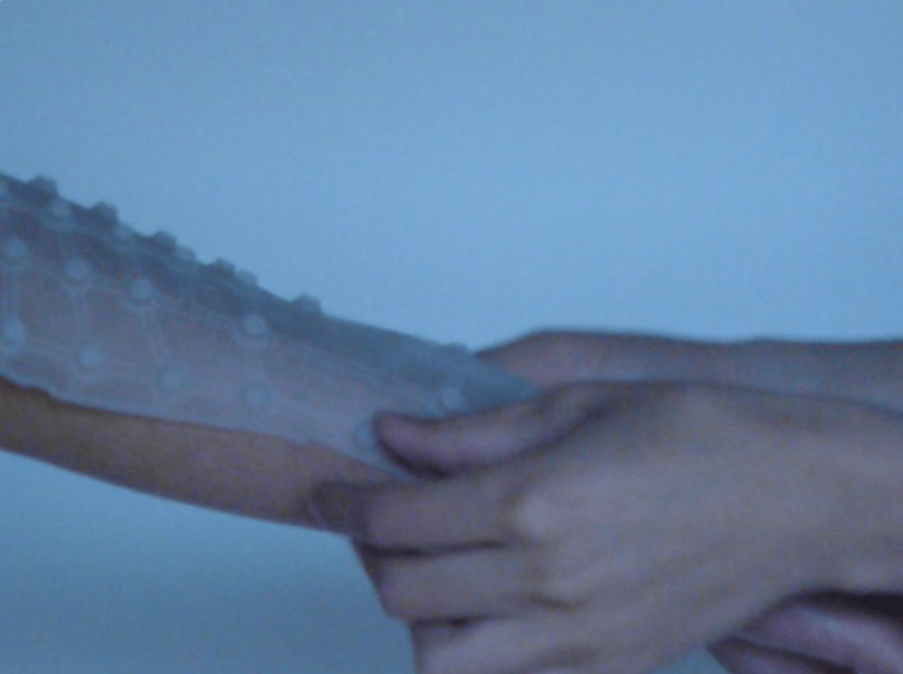 Inspired by mirror neurons, this establishes a communication bridge between one person and another through the hearing of the other´s skin.