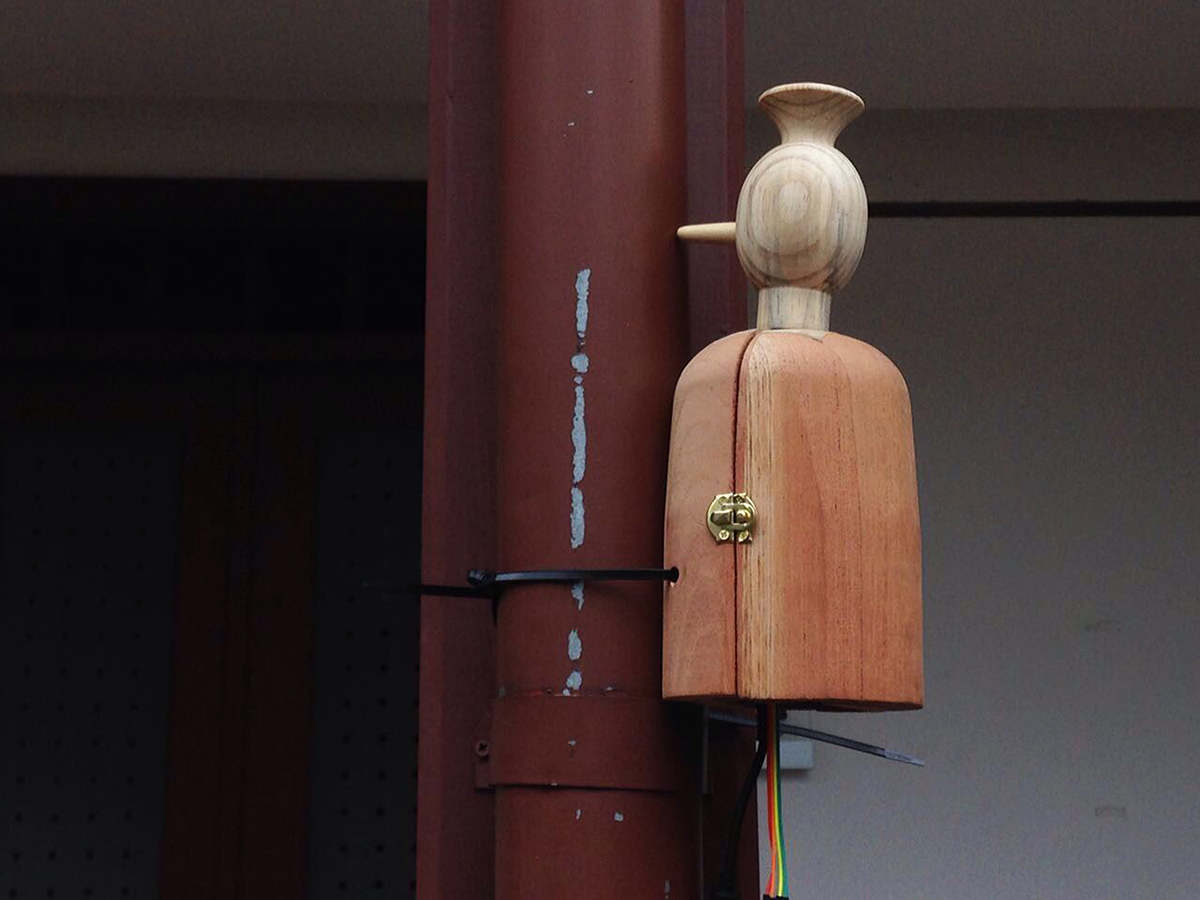 A solenoid motor was used, located in the bird’s beak that connects to a distance sensor, causing the bird to touch the pipes before the proximity of passers-by.